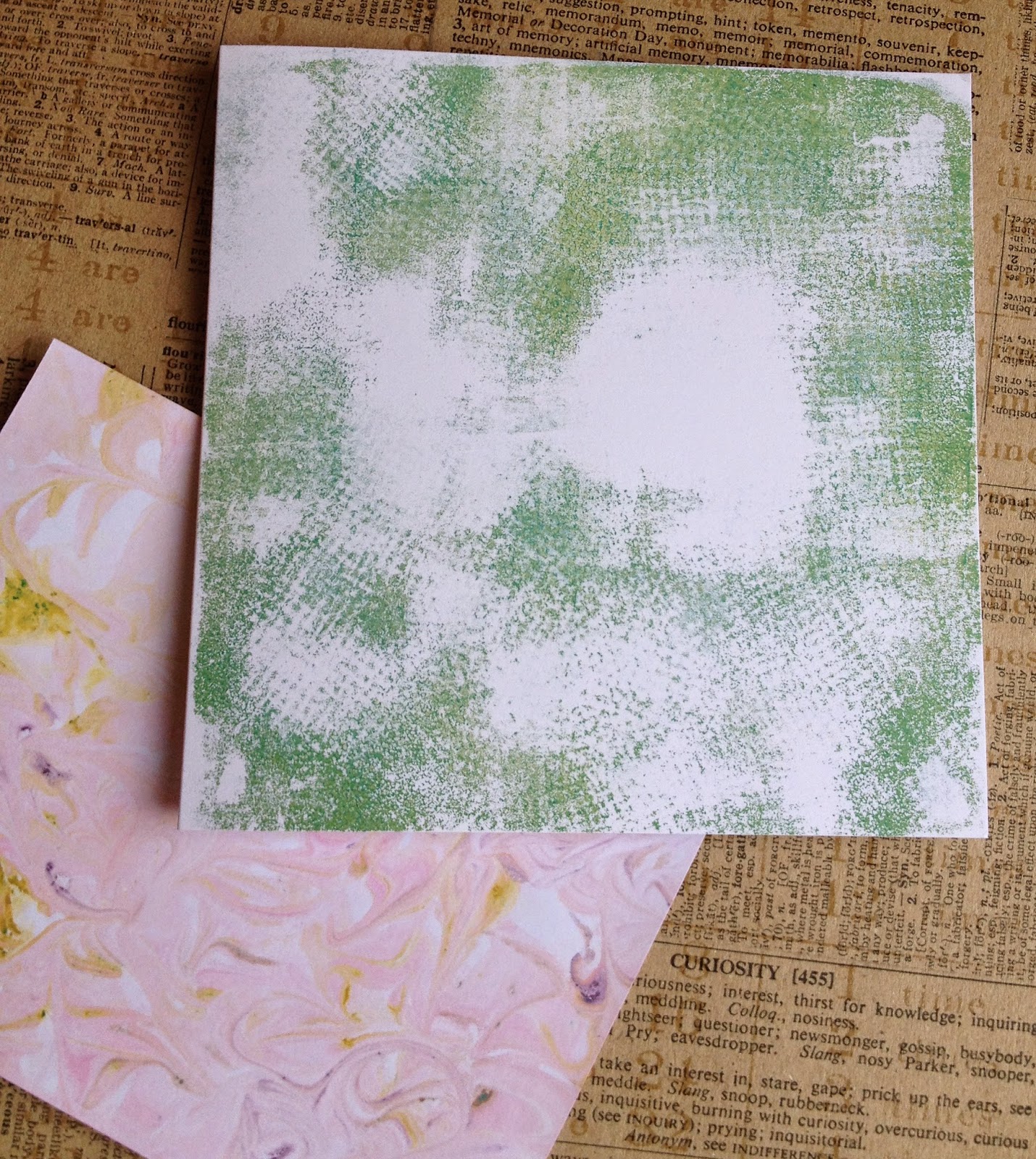 On the reverse side I stamped using Archival Cornflower ink and the register stamp from Studio 490 Love to Make Art set. Then once dry added grunge paste through Tando's Bird and Branch mask.